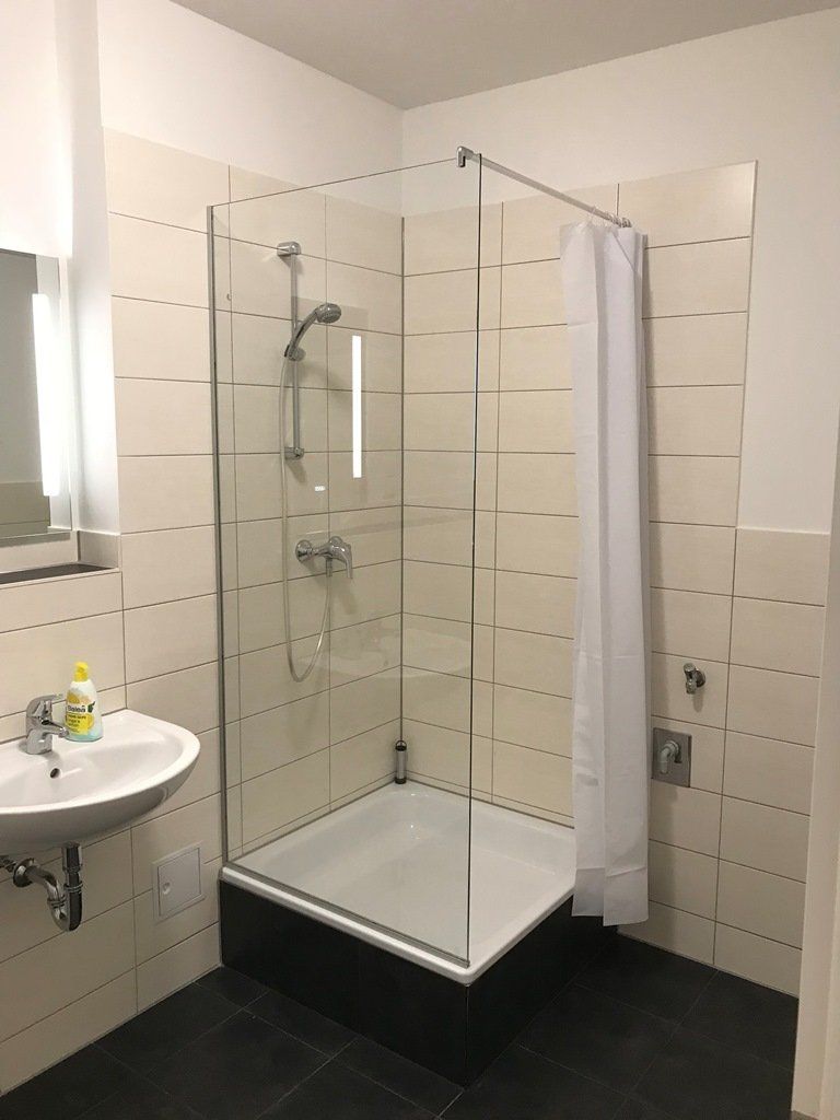 Ihnen steht eine Küchenzeile zur Verfügung, die mit einem Kühlschrank, einem Herd, einem Wasserkocher und auch ansonsten allem Notwendigen für den täglichen Bedarf ausgestattet ist (z.B. Teller, Tassen, Besteck etc.). Ihr Badezimmer verfügt über ein WC, ein Waschbecken und eine Duschkabine.